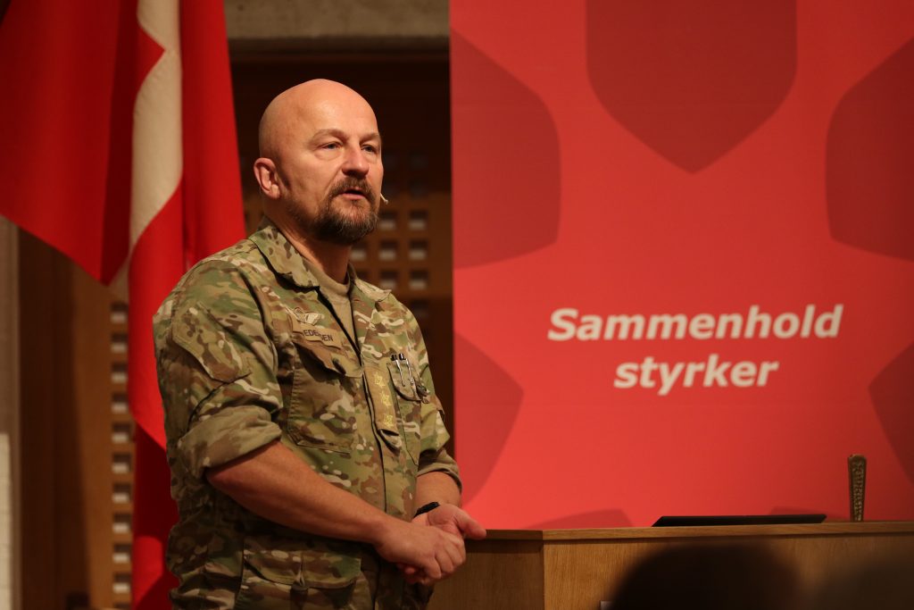 – Ruslands angreb på Ukraine har været en opvågning, som i den grad har fået os til at tale sammen om, hvor vi står. Også blandt os i uniform, der fulgte Putins opmarch langs den ukrainske grænse sidste vinter, blev der tænkt, ”ah, det sker nok ikke.” Men det gjorde det, og der er igen krig i Europa, vi taler igen om atomtruslen i Europa, og vi ser igen krigsforbrydelser på europæisk jord.