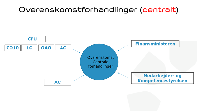 Her kan du se en illustration over, hvem der forhandler Overenskomstforhandlinger (centralt)